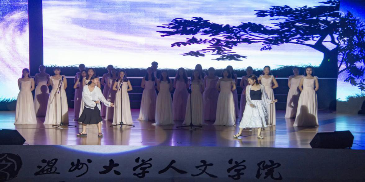 在《送别》的歌声中,毕业生晚会拉开帷幕。第一个主题是“初心不忘,自信起航”。其中音乐情景剧《等你下课》,描绘了青春朦胧时期的爱情,让毕业生们不禁回忆起刚入校时的悸动心理。台下的观众们也都静静倾听着,随着旋律哼了出来。接着是第二个主题,“逐梦砥砺,且吟且行”。舞蹈《Good Time》由16广本的同学带来。与之前的风格不同,在火热的舞蹈串烧熏染下,现场的氛围瞬间被点燃了,活力四射,激情洋溢。毕业生们不禁回忆起当初逐梦的激情。随后,14中本一班的同学为观众们朗诵了一首《匆匆》。安静的氛围下,抑扬顿挫的朗诵声在整个大礼堂里回荡。时间确实匆匆,也激起了毕业生们对时间匆匆的感慨,为各自在逐梦中冲破云雾的精神的感叹。最后一个主题“青春无价,不畏远方”。最后,14历本的同学共同演唱了《我在未来等你》。对青春的回忆,对未来的展望尽在歌声中传达出来,也在这一首歌中,晚会渐渐拉上了帷幕。