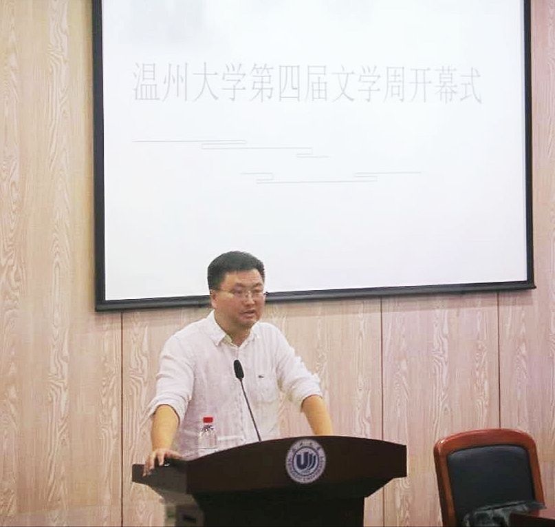 10月19日晚,温州大学第四届文学周于国产成人自拍 203学术报告厅拉开了帷幕。院长孙良好,《江南杂志》主编、温籍知名作家钟求是,温州市作家协会副主席、驻校作家东君等嘉宾出席了开幕式,院党委副书记魏一主持开幕式。开幕式结束后,钟求是带来了以“小说世界的构建”为主题的讲座。