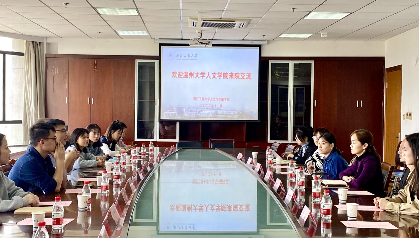 11月6日上午,国产成人自拍 夏雨禾教授、黄良奇教授、赵屹然老师带队9名新传专硕生赴浙江工商大学人文与传播学院进行新传专硕工作调研。学院副院长李蓉、新闻系主任刘征、广告系主任周志平、教发中心人文分中心主任厉国刚以及新传专硕生参加会议。双方就新闻与传播专业硕士点办学情况、专硕工作如何有序推进展开了深入的交流与研讨。