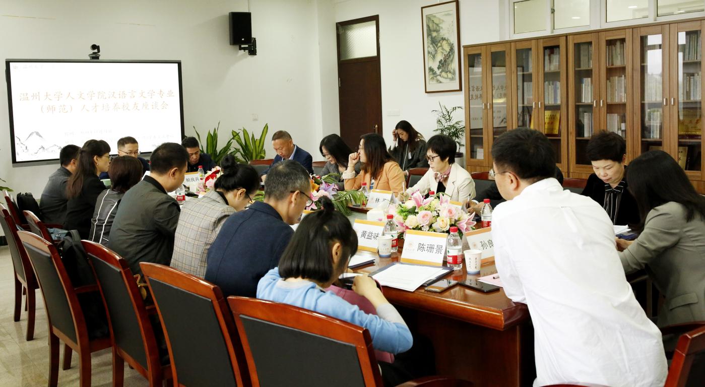 2020年11月21日,国产成人自拍-成人偷拍网 2020级汉语言文学专业(师范)培养方案修订暨国家级一流专业建设点汉语言文学专业人才培养校友座谈会在国产成人自拍-成人偷拍网 213学术交流中心召开,会议邀请到了温州市绣山中学校长林晓斌、温州实验中学副校长周莹、温州市第二外国语副校长张寰宇、温州中学教授级高级教师娄沂和省特级教师郑可菜等13位温州基础教育的名师名校长优秀校友代表。国产成人自拍 领导、学院中教法教研室教师参加了座谈会。