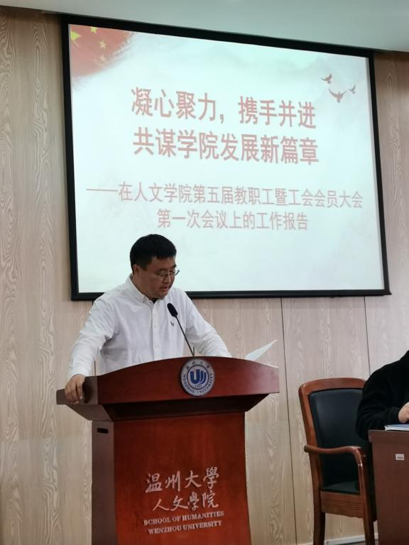 2020年11月25日下午,国产成人自拍 第五届教职工暨工会会员大会第一次会议在人文楼203报告厅隆重召开,会议由吴静书记主持,学院全体教职工代表出席。