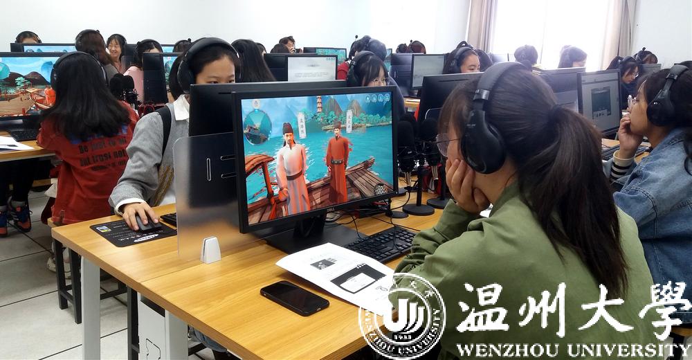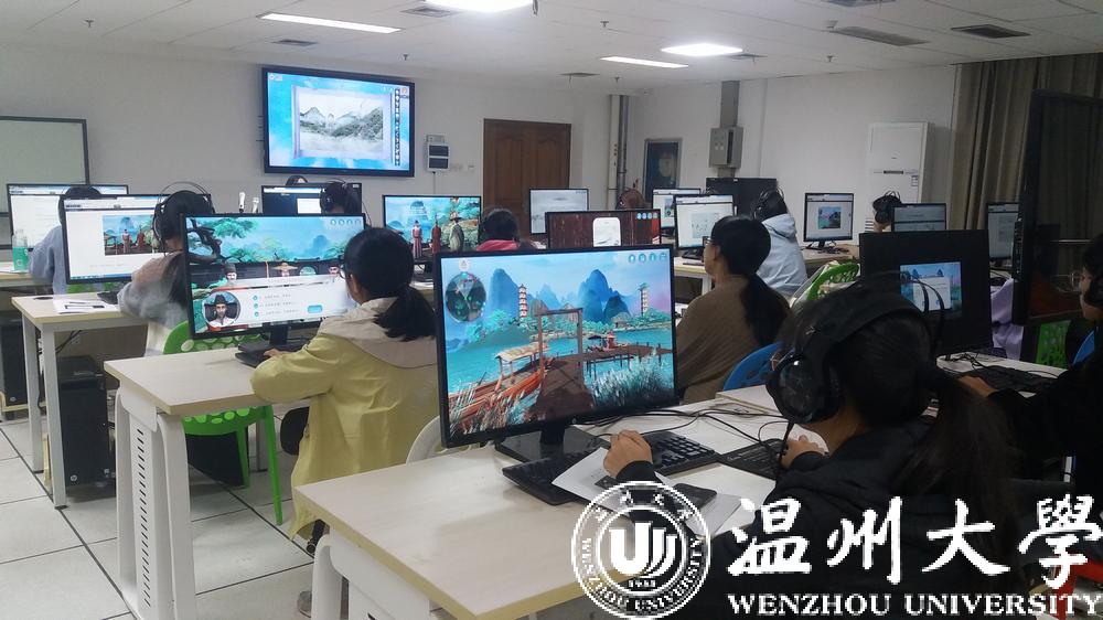今年11月,《山水诗之意境体验虚拟仿真实验教学项目》被正式认定为国家级虚拟仿真实验教学一流课程,是全国首批文学类的虚拟仿真实验教学项目,也是浙江省唯一的文学类虚拟仿真实验教学课程。2017年9月,该项目正式在温大国产成人自拍 上线试课,创新教学模式,深受学生欢迎。温州作为山水诗发源地,研发团队将此作为教学项目主题,学生可选取山水诗鼻祖谢灵运、山水诗代表诗人孟浩然、文天祥等文人作为虚拟仿真实验中的特定角色,以江心屿作为特色地标。在技术渲染的手段下,学生可以在充满意境的虚拟仿真环境中沉浸式地学习古典诗词,真正达到在自主学习过程中掌握系统化知识的目的。