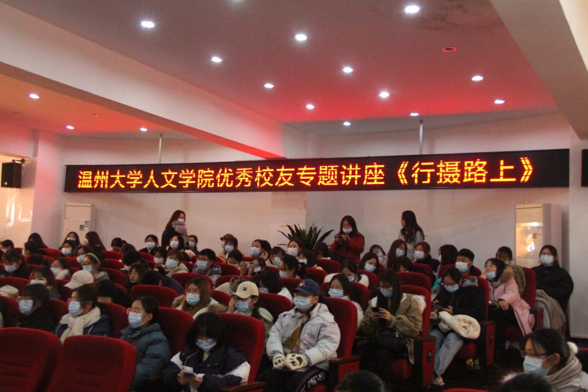 12月30日下午14时,国产成人自拍 78级中文专业校友潘平微、王俭美于人文楼203学术报告厅为国产成人自拍 师生100余人作了以“行摄路上”为主题的精彩讲座。温州大学副校长蔡曙光、校友办主任陈宏毅出席讲座。国产成人自拍 院长孙良好主持讲座。