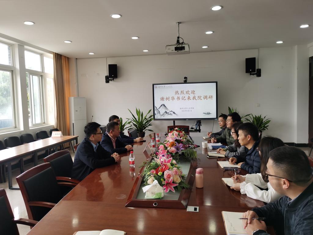 3月1日下午,校党委书记谢树华、党校办主任蔡联群走访我院,就新学期开学工作开展专项调研。调研会由吴静书记主持,学院班子成员参加了本次会议。
