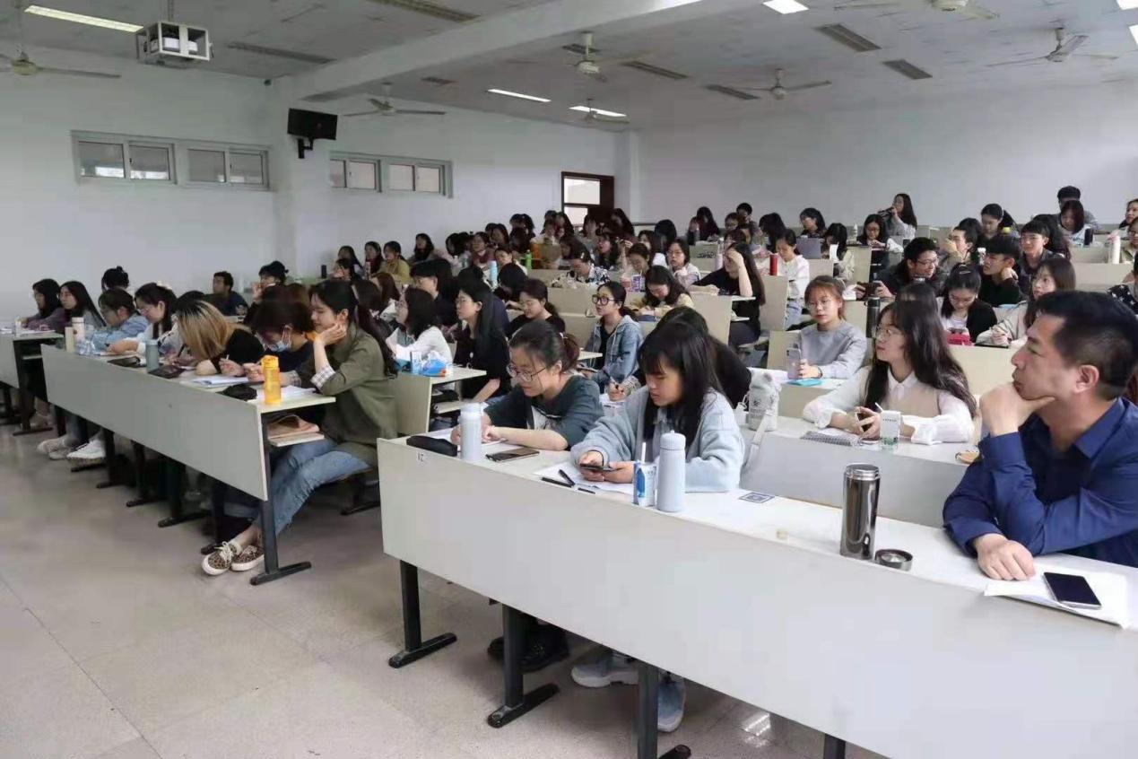 (三)4月28日周三上午10:00——11:30,在国产成人自拍 402教室,由温州市名师陈珊景老师,为同学们做了《聊聊从专业走向职业那些事儿》的讲座。陈珊景老师是温州市南浦实验中学的语文老师,还担任该中学的办公室主任。陈老师本次的讲座分为“职业的颜值”、“大学的修炼”、“牵手的准备”三个部分,在生动活泼的气氛中为同学们讲述并进行适时交流。