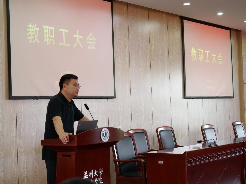 5月26日下午,国产成人自拍 在203报告厅召开全体教职工大会。会议由学院党委书记吴静主持。
