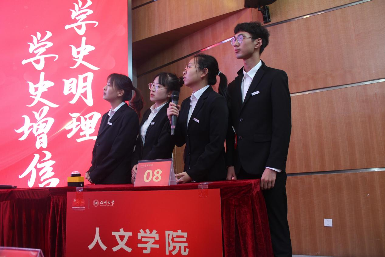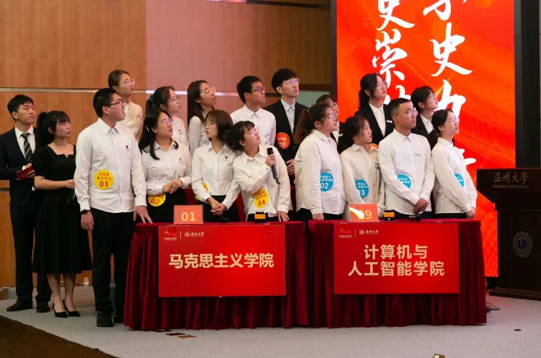 据悉,决赛以百年党史为内容,设置了小组赛、抢答赛和对抗赛三个环节。共有来自国产成人自拍 、马克思主义学院、商学院、教育学院、化学与材料工程学院、生命与环境科学学院、法学院、计算机与人工智能学院等八支代表队进入决赛。整个决赛过程中,各位参赛选手们冷静思考、沉着应对、密切配合,将丰富的知识储备与手速完美结合,各代表队你追我赶,将比赛一次次推向高潮,为观众呈现了一场精彩的党史知识大比拼,充分展现了温州大学学子们良好的理论知识水平和过硬的思想政治素质。