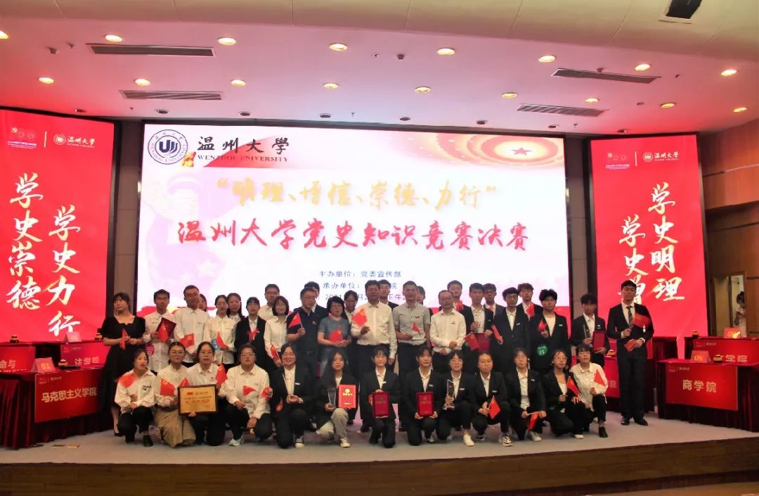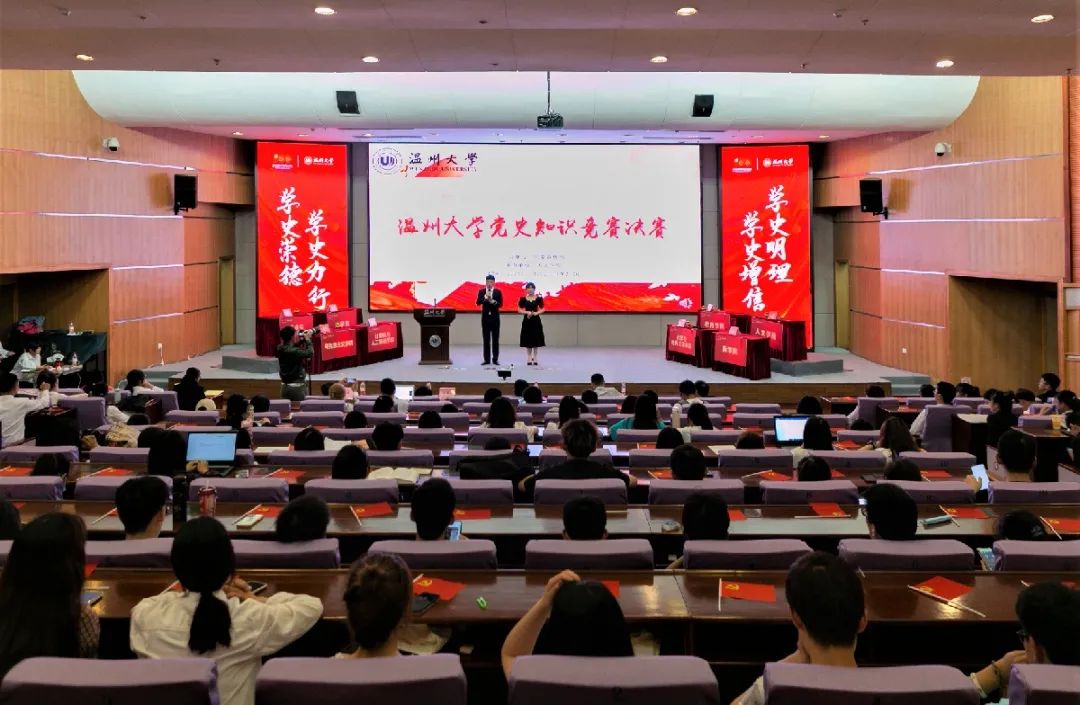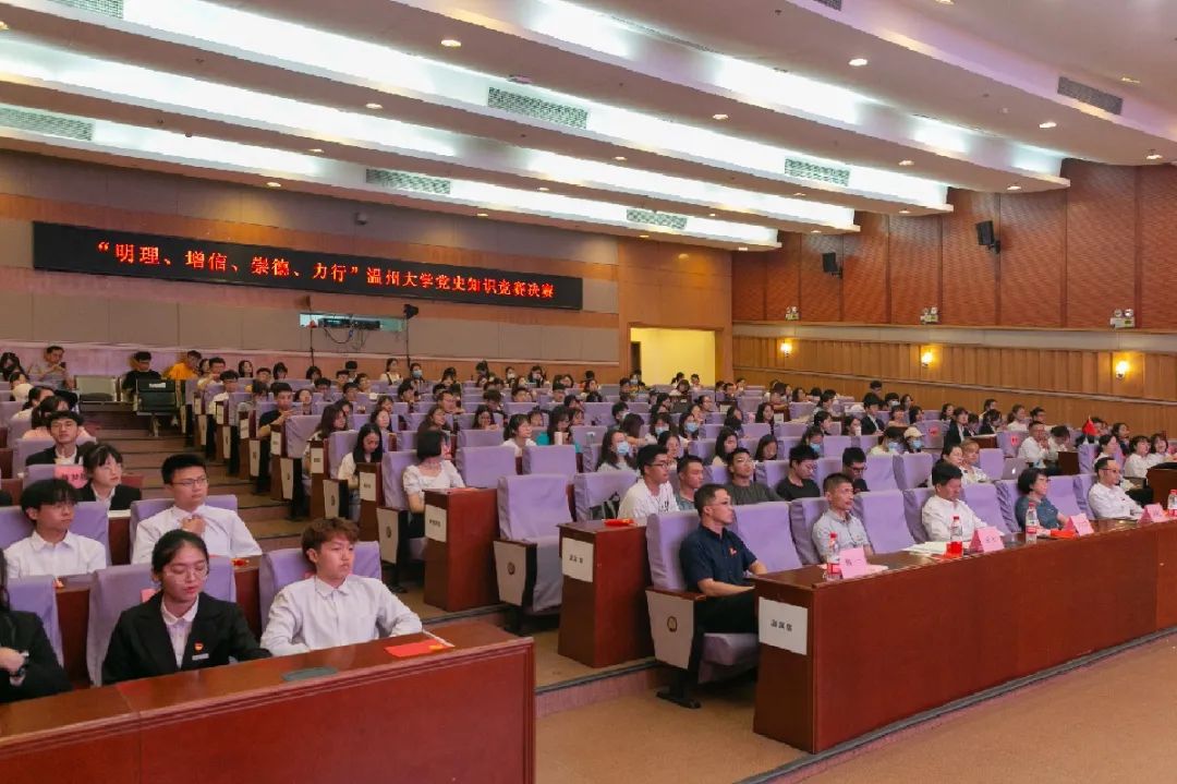 为庆祝中国共产党建党100周年,更好地引领广大党员和干部群众深入学习党的光辉历史,引导大学生以实际行动践行初心使命,从党的历史中汲取奋进力量,5月26日下午14:00,由校宣传部主办、国产成人自拍 承办的“明理·增信·崇德·力行”党史知识竞赛决赛于育英图书馆报告厅隆重举行。温州大学党委副书记庄兴忠、党委宣传部副部长吴翔之、学工部副部长王壮、校团委副书记丁强、国产成人自拍 党委副书记魏一出席,现场近两百余名来自全校各学院同学观赛。