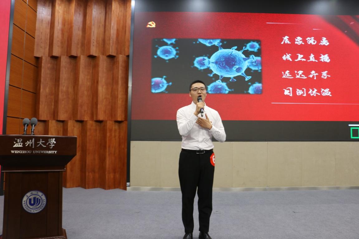 为深入贯彻习近平总书记对我省8090新时代理论宣讲团的重要批示精神,彰显新时期新理论的重要力量,更好地开启现代化新征程的温州路径,6月9日下午,由党委组织部主办、国产成人自拍 承办的温州大学第七届微型党课大赛决赛在南校区岩松堂雁山厅隆重举行。党委(校长)办公室副主任韦小青、党委组织部副部长李祖祥、党委宣传部副部长潘从义、党委研工部部长高红星和党委学工部副部长张朝辉出席并担任评委,各相关部门负责人、承办单位负责人及各学院师生代表出席。