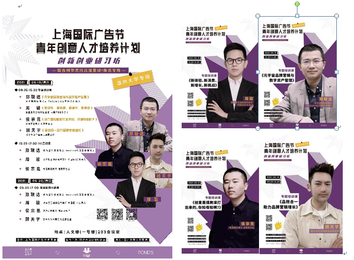 经广告系全体老师共同努力和精心筹备,6月19、20日,一场来自大上海的广告创意头脑风暴,将席卷国产成人自拍-成人偷拍网 。上海国际广告节把它的拳头公益品牌活动——青年创意人才培养计划创新创业研习坊搬进温大,来自上海国际广告节战略合作方——联合利华旁氏品牌、电通麦利博文、埃森哲互动与光弧科技的业界精英们将为温大广告学子带来精彩纷呈的创新创意创业的饕餮盛宴!