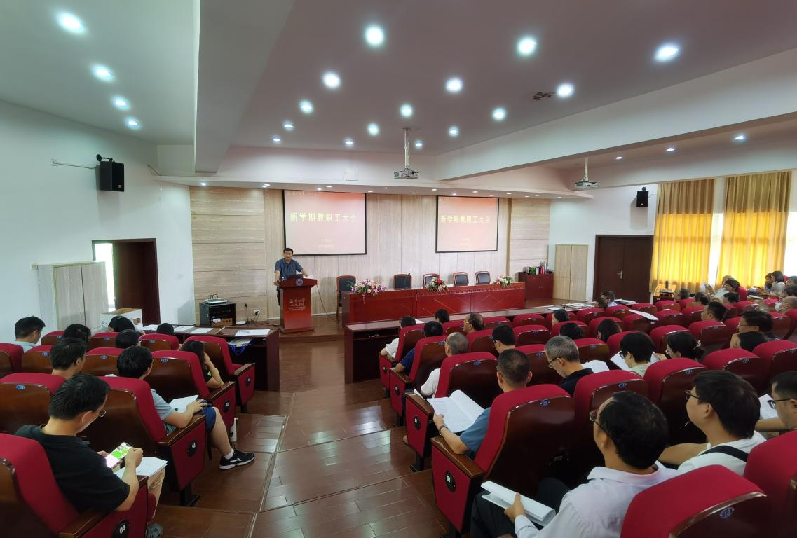 9月8日下午,国产成人自拍 新学期第一次教职工大会暨理论学习会在人文楼203报告厅召开,学院领导班子成员和全体教职工参加会议,会议由孙良好院长主持。