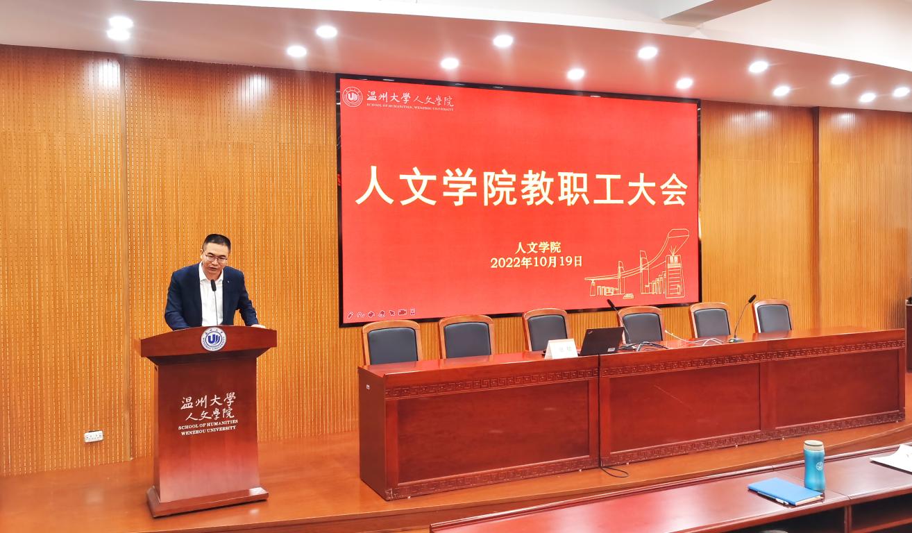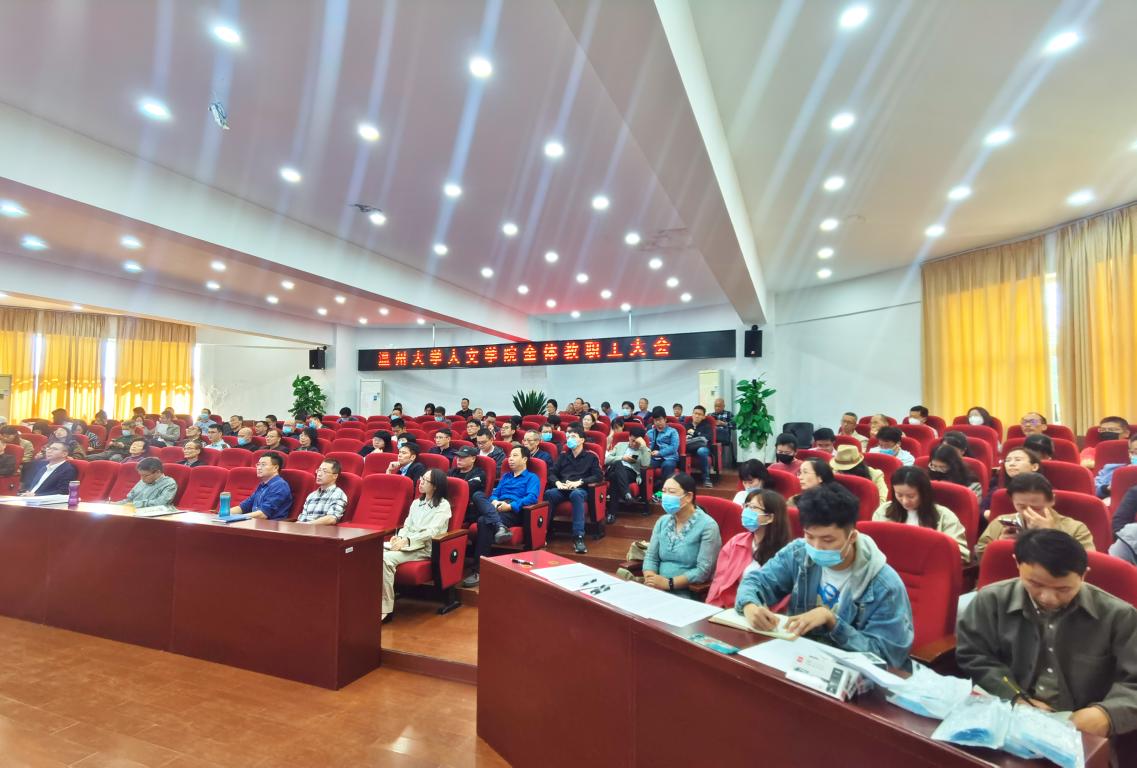 10月19日下午,国产成人自拍 在人文楼203报告厅召开全体教工大会,学院领导班子和全体教职工参加会议,会议由学院党委书记江秀景主持。