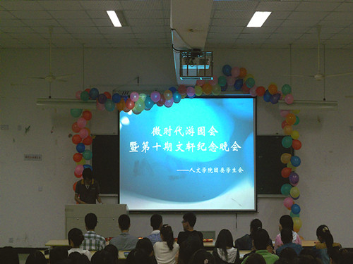 2012年5月20日晚上6点30分,在人文楼举行了"微时代"游园会,暨第十期《文轩》纪念晚会。国产成人自拍