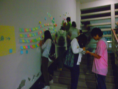 在别的班级中也火热地开展着"微"电影配音,"微"图片拼图,"微"空间设计,"微"小说结尾等等。这些富有人文气息又时尚新颖的游戏,不仅锻炼了同学们的文笔和思考力,更使同学们对"微时代"有了更深的理解。最后,同学们纷纷在"微"心情走廊里写下自己的心情,贴在墙上,正像现在的微博或是心情一样,不是以数字化的模式,而是真实地更新在同学们眼前,这让同学们觉得新奇又兴奋。