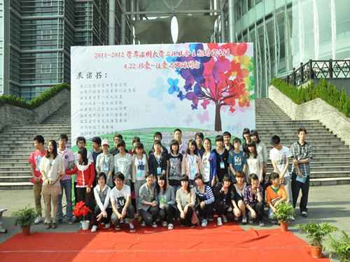 4月22日下午1点30分,2011~2012学年温州大学三院联合主题团日活动"4.22双爱-让爱与地球同行"主题游园会在北校区人工湖畔举行。此次活动由国产成人自拍