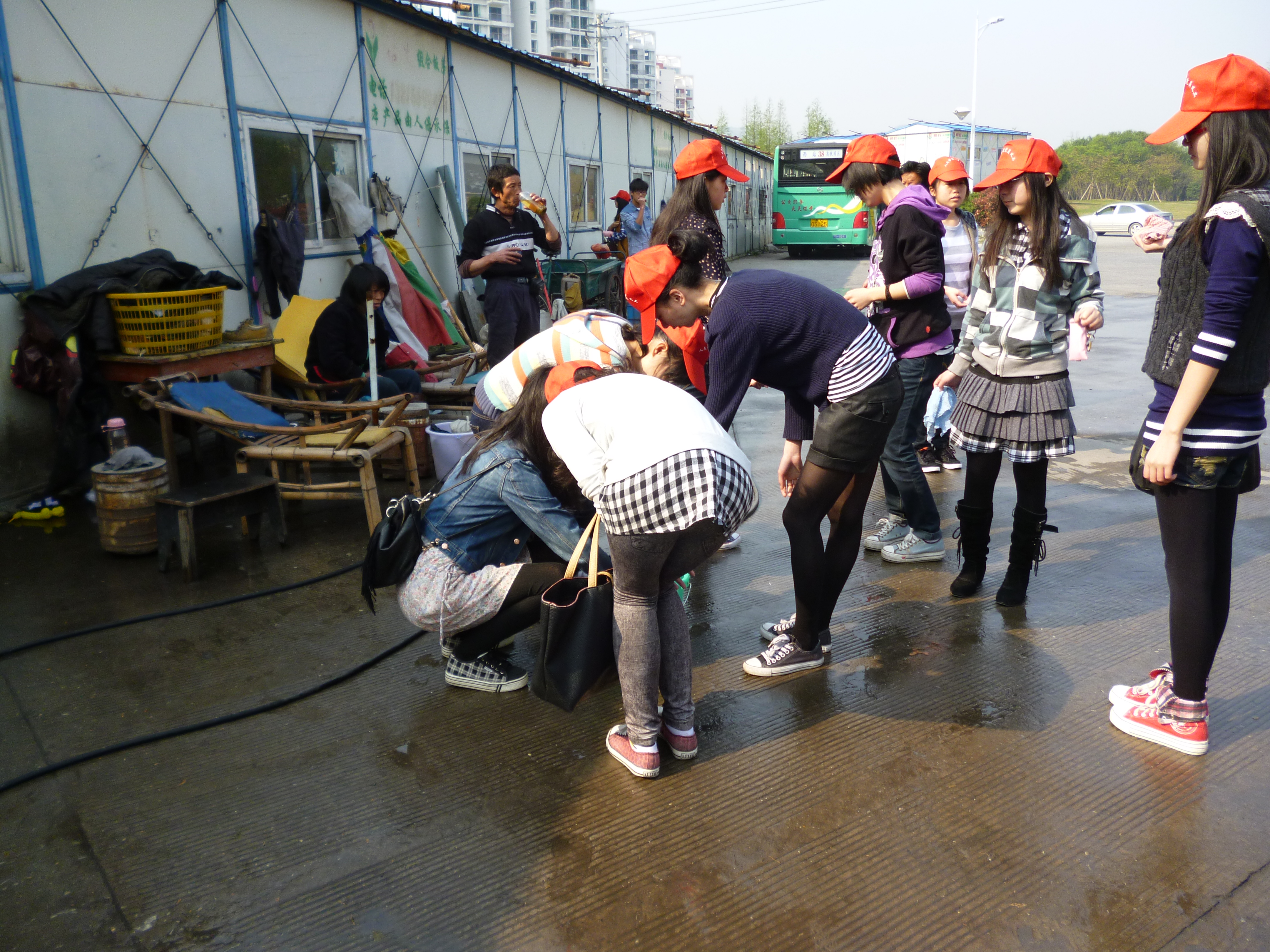 2012年4月7日8时,国产成人自拍 党员之家组织了17位预备党员,前往温州高教园区公交车总站开始两个小时的清洗公交车活动。