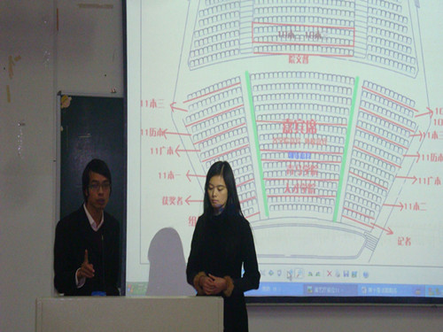 首先,麻老师上台介绍了本次校园话剧节的主要情况,强调了活动的重要性,对各位学生干部进行了积极的动员,希望学生干部各负其责,认真举办好本次话剧节。