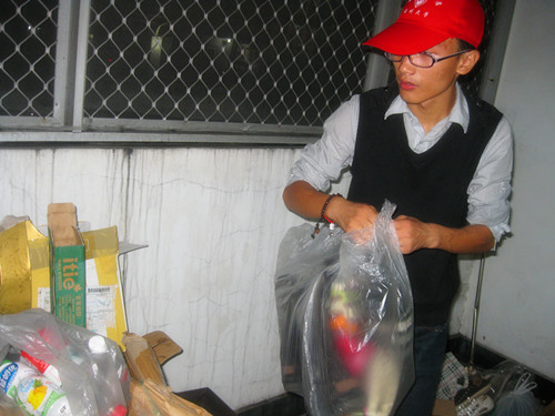 2011年11月18日,温州大学人文思源青年志愿者协会在温大C区学生宿舍继续进行废旧物品回收的常规活动。同学们都很热情地配合志愿者们的活动。
