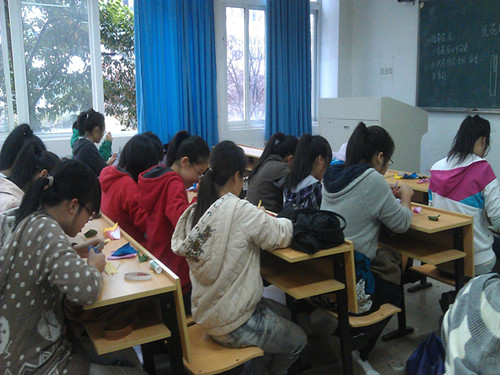 2011年11月23日下午1点30分,手艺培训班第六课在人文楼102教室开课。讲师茅静飞、校素拓中心成员温作凯以及培训班学员参与了此次培训。