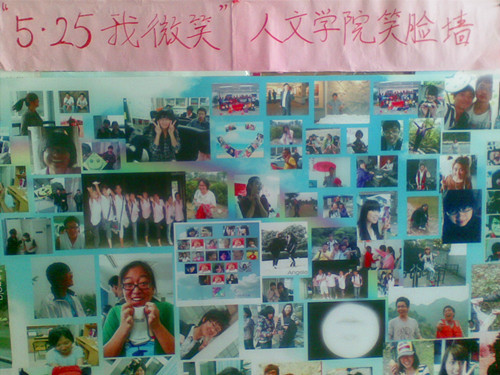 心理部的同学把收集到的笑脸通过仔细的删选,把最能表现同学们阳光可爱的照片集中起来,通过笑脸墙的方式在学院里进行展示。长长的笑脸墙上洋溢着的是来自国产成人自拍