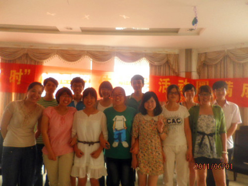 团体辅导开始。首先是一个热身活动,名为"叠罗汉",目的在于增进彼此相识,在较短时间内认识更多的人。此活动结束,先由各个心理委员谈谈感想,然后曾老师总结心理委员在班内主持活动时同样可以采用这样的活动来增进彼此的熟知度。其次是名为"刮台风"的游戏,此游戏的目的在于活络气氛,增强自我的认识。同样的活动结束,曾老师带领各位心理委员总结了开展此活动的意义。第三个活动名为"抓快乐",目的在于寻找自己的快乐。第四个活动名为"我的爸爸妈妈",目的在于增进我们对自己父母的了解。同样的在这几个活动结束后,曾老师总结了开展这些活动的意义,并指出心理委员在开展团体辅导时要根据活动的主题来挑选游戏,在活跃气氛的同时也要带给同学们以生活学习的启迪,已达到进行团体活动的目的。