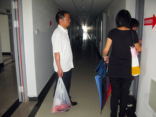 的辅导员老师和各班的班主任在党总支副书记骆锤炼老师的带领下,下寝室为各个寝室的同学分发端午节的粽子和咸鸭蛋。