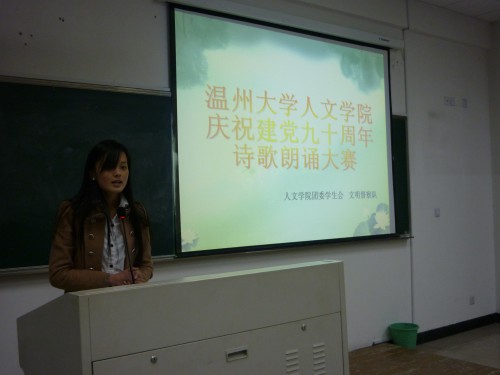 庆祝建党九十周年诗歌朗诵大赛在1-301教室准时开赛。国产成人自拍