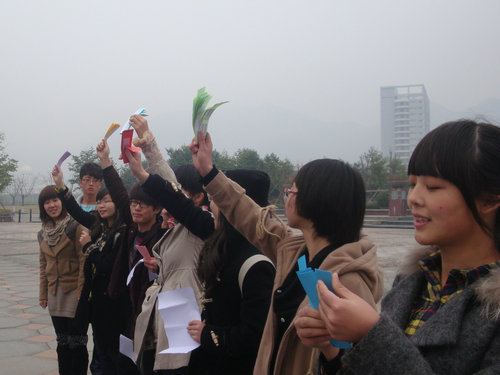 参与活动的同学们被分成了8个小组。按照游戏规则,每个小组要找出工作人员事先放好的属于自己小组颜色的小纸条,并回到工作人员处进行答题,用时最少且正确率最高的小组获胜,获胜小组将获得精美礼品。在工作人员按下计时器后,各小组立刻奔向“寻宝” 场地,仔细寻找隐藏在角落中的小纸条。活动现场顿时显得十分热闹。最终,水蓝色纸条的小组一马当先集齐纸条,顺利答对问题,成功夺取了桂冠。