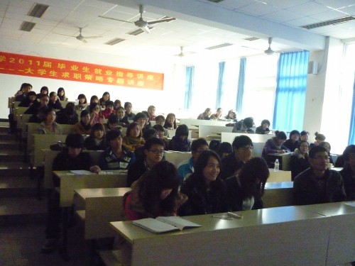 12月9日下午14时,温州大学2011届毕业生就业指导讲座之大学生求职策略专题讲座在北校人文楼201教室举行。本次讲座由温州大学就业工作处就业指导科科长陈坤党老师主讲,国产成人自拍