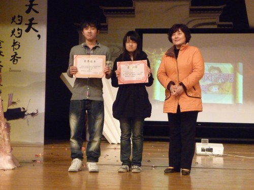 凭借一年来优秀的工作表现再次荣获第一。并由校团委办公室主任屠霁霞老师颁奖,国产成人自拍