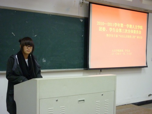 首先,由团委、学生会各部的部长陈述前一阶段的工作情况,安排下一阶段的工作并指出了工作中出现的一些问题。接着副主席相孝锟、黄凤燕、范骏相继发表对各部工作情况的评价,指出各部门在工作中要注意的事项。紧接着,团副梅秀娟介绍了即将进行的“我的图书馆一日”活动,并总结工作情况、评价学生干部测试结果和重申学生工作的注意点。最后,学生会主席陈辉介绍了学生干部"513人才培养工程",并讲述了该培养工程重点培养计划并强调了下个阶段学生工作的重点项目。