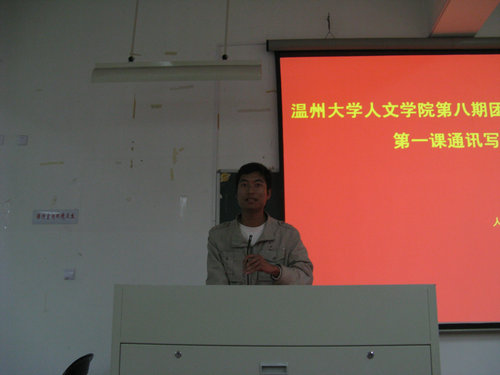 第八届团学干部培训班的通讯第一课在1-203教室展开。主题为通讯写作的培训第一课由校团委《温大青年》主编胡梦玲讲授,新一届团委学生会成员共同参与。