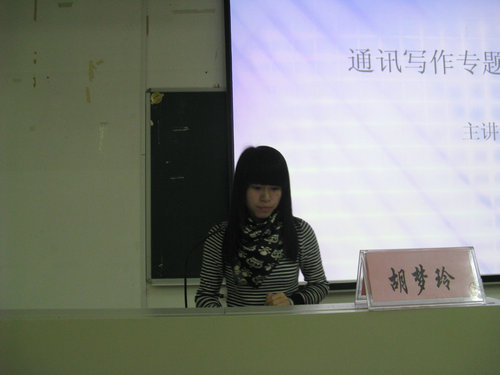 培训班由团委、学生会主席陈辉主持,胡梦玲学姐讲授。课程主要针对如何写好通讯的目标,分析了通讯的特点、类型、注意点等等方面。课上的具体通讯案例分析更是起到了互动作用,相互的交流提问营造出热烈的气氛。