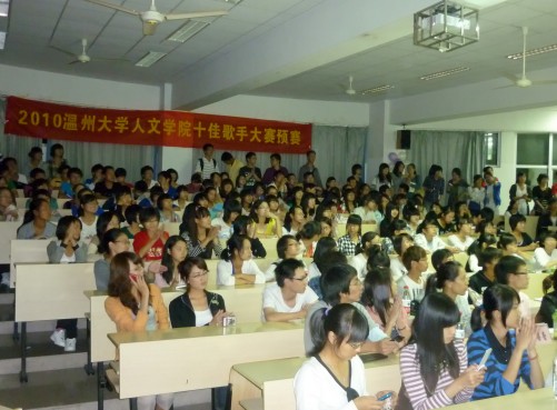 十佳歌手大赛预赛在人文楼203教室拉开帷幕。学生科副科长曾蓓蕾老师、辅导员麻法全老师,音乐学院的两位研究生,学生会成员等出席该赛。国产成人自拍