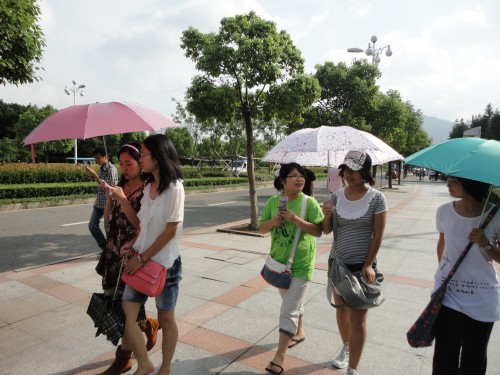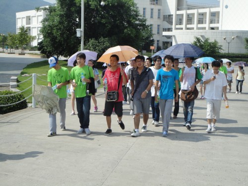 上午8点,志愿者们首先带领大一的新同学游大学城,十人一组,分别由一位志愿者带领。大家分为两条路线--“南校-北校”、“北校-南校”参观。一路上,志愿者们向大家介绍沿途所经过的建筑。大一的同学以好奇兴奋的目光打量这个即将要在此学习、生活四年的地方,并且纷纷向志愿者们询问学习生活上的问题,大家相谈甚欢。下午,志愿者们又带着研一的学长学姐游大学城。学长学姐们向志愿者询问关于譬如借书、休息等生活学习的事,志愿者们也在像这些“前辈”们讨教考研的相关事项,“前辈”们也都不吝赐教。