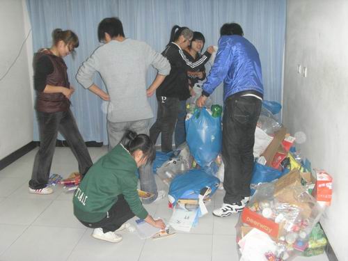 虽然天公不作美,但这并不影响志愿者们的热情。就位后,志愿者们拿着环保袋前往各自的责任寝室,回收废旧纸张、废旧塑料瓶等。活动已先后开展过两次,得到了寝室同学的大力支持和积极配合,还收到了不少宝贵的建议,有力地促进了活动更好地进行。最后,志愿者们将回收的物品分类整理,活动圆满结束。