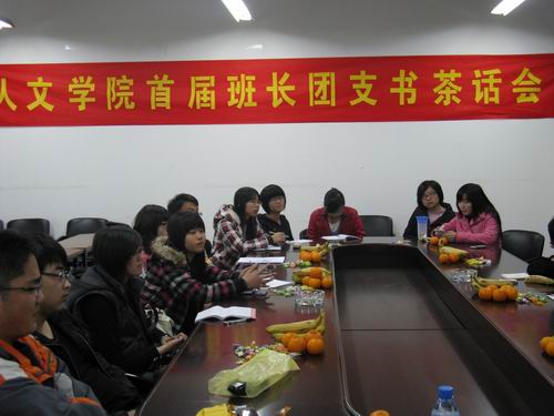 首届班长、团支书茶话会,院学生会主席吴剑波、副主席郑秋枫同学列席了本次会议。