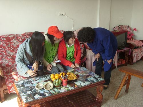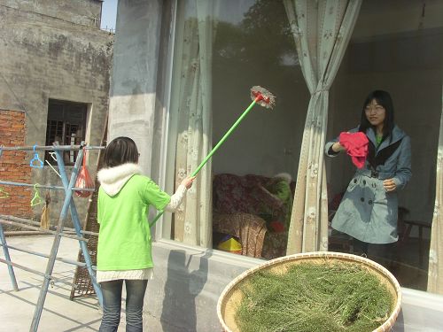 在到达姜宅村后,志愿者们便按事先分好的小组前往各个老人家。有的志愿者是第一次去那些老人家,但也并未感到有什么隔阂。老人家的热情和志愿者的热心,使得大家马上就亲切攀谈起来。在交谈中,志愿者与老人的关系更是亲密,交流起来更加随意与和谐。志愿者们简单通俗的向老人们讲解了关于春季养生保健的注意点,还为他们打扫卫生、陪他们散步,甚至还和老人们一起做饭。志愿者们与老人在一起的一幅幅感人至深的画面,看上去就像是一对对祖孙。时近中午,志愿者们与老人告别,并相约下次再来。