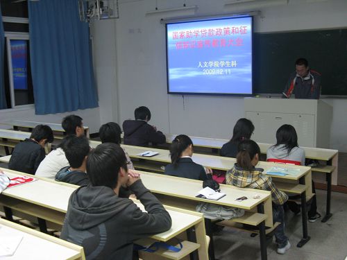 国家助学贷款政策和征信知识宣传教育大会在人文楼202教室准时举行,国产成人自拍