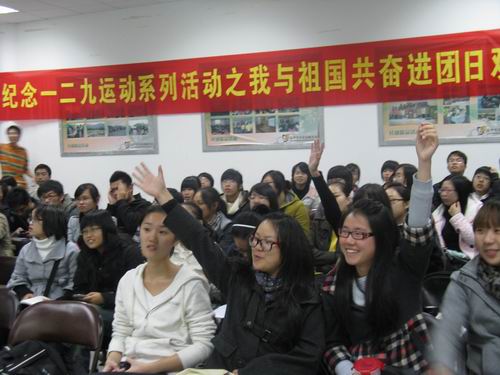 纪念“一二·九”系列活动之“我与祖国共奋进”团日活动观摩在大学生活动中心素拓室举行。本次活动由国产成人自拍