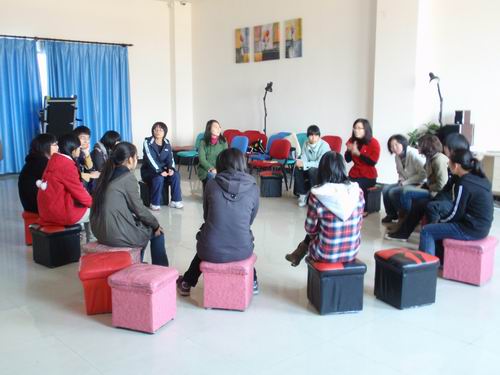 首先,曾老师向参加此次团体辅导的所有成员介绍了活动流程,让同学们对活动有了一个整体了解。接着,在老师的带领下,成员们参与了萍水相逢、打开心门交朋友、我想有个家、解开千千结等环节,体验了叠罗汉、寻访大手印、坐地起身、心有千千结等10个团体辅导小游戏。虽然只有短短的一个半小时,但成员们经历了由陌生到熟悉,由相识到相知的人际交往过程,收获颇多。每一个环节后,成员们都积极发表的感想,曾老师就每一个环节加以讲解,辅导室内气氛热烈、融洽。15:30左右,本次心理团体辅导圆满结束。