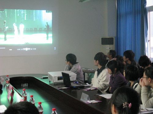 介绍完相关活动之后,话剧沙龙正式开始。孙良好老师和现场的同学从他对话剧的一些感想说起。其中不乏有对同学们排演话剧大有裨益的金玉良言。而后,胡志灵同学继续话题,与大家交流了他对话剧的一些看法,包括话剧的创作、宣传,以及学生话剧的现状,并对热爱话剧、有志于话剧事业的同学提出了不少珍贵建议。上届话剧节的一等奖剧目《阮玲玉》的导演陈书楹同学、最佳女主角王洋同学、最佳男主角李一龙同学分别以自己的亲身经历,与同学们分享了话剧导演、演出方面的经验,令人受益匪浅。沙龙活动在《阮玲玉》话剧的视频回放中结束。