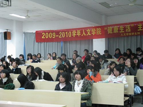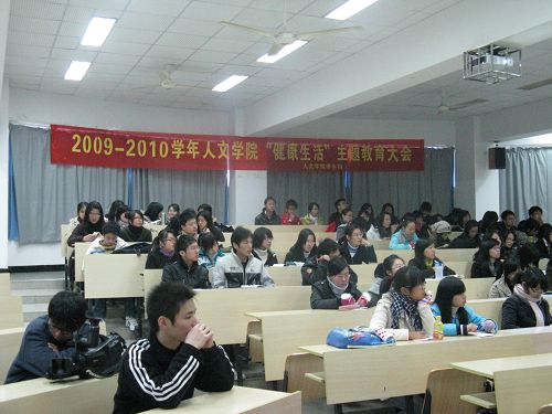 2009--2010学年“健康生活”主题教育大会在北校区人文楼203教室准时开始。国产成人自拍