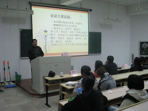 首先,冯老师报告了前一段时间的公寓工作情况及之后的活动计划,并提出了几项要求,希望同学们能够保持寝室的整洁。然后,冯老师向大家介绍了甲型H1N1流感的防控常识,并提岀四项预防措施,要求同学们关注自我卫生习惯和生活细节,积极预防甲流。接着,周书记上台发表了讲话,他详细地向在座的同学们阐释了本次会议的精神,并举例加以强调,希望同学们在大学生活中注意个人卫生、搞好人际关系、健康生活,并重申了人身安全问题,同时也希望在座同学将会议精神传达给广大同学,共同构建和谐校园。最后,曾蓓蕾老师公布国产成人自拍