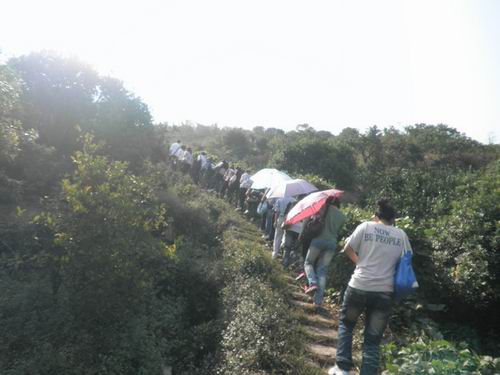 早晨七点半,栖风的成员们于北校门口集合。在拍照留念之后,社长便带领着一行人浩浩荡荡地向大罗山进军。参加采风的多是大一新生,大家彼此介绍认识,交流大学生活,气氛轻松愉快。步行至大罗山脚,在观望了一棵百年古树之后,社员们开始爬山。欣赏着沿途的风景,谈论着生活琐事,社员们忘记了爬山的辛苦,在大罗山上愉快地度过了一个上午。