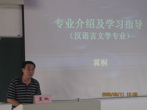 的主干专业作了简要说明,并指出汉语言文学是温大授予硕士学位最多的一个专业,拥有精良的教师队伍,为有远志的学生考研提供了一个非常好的平台。接着,冀桐教授又对汉语言文学的培养方案和课程设置作了详细的说明,并就师范类和非师范类的异同给出了明确地解说。其中,冀桐教授重点强调了学中文的基本功--读说写这些看家本领与就业的关系,同时也诚恳地建议大一新生们要博览群书,开拓视野。然后,冀桐教授就汉语言文学的课程结构与体系和学分制、第二专业、辅修专业作了详细地解说。最后,冀桐教授就自己多年的教学心得给大一新生们交流了学习中应该注意的几个问题,并鼓励同学们多读、多思、多写,提倡同学们要自立性和研究性地学习,挖掘自身的潜力。新生们认真聆听,收获颇多。