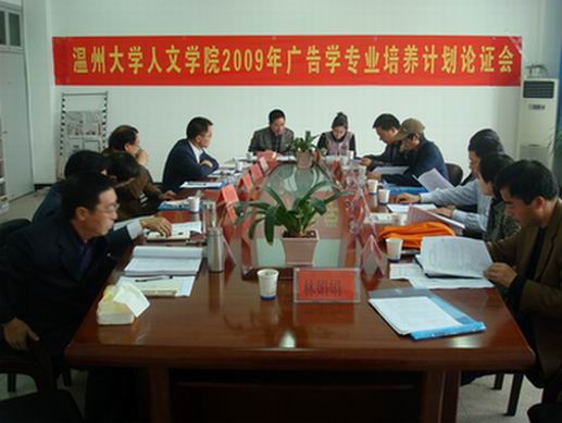 3月20日下午,国产成人自拍 召开广告学专业培养方案专家论证会,专家组由浙江大学广告学系主任胡晓云教授、浙江工业大学广告系主任张雷教授、宁波大学传播与艺术学院原院长陈月明教授,温州市高速广告有限公司董事长、广告协会副会长李玉信,温州市长运广告公司董事长、广告协会副会长郑元林、美术学院副院长舒湘鄂教授、商学院李忠宽博士组成。