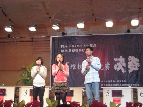 3月15日下午两点,由温州大学学生会主办,温州大学法政学院团委学生会承办的3•15维权知识竞赛决赛在北校音乐厅准时拉开帷幕。国产成人自拍