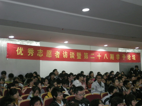 2008年12月17日晚,人文"思源"青年志愿者参加了温州大学"优秀志愿者访谈暨第二十八届学子论坛活动"。