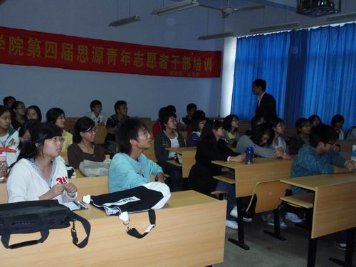 2008年11月9日,国产成人自拍-成人偷拍网 “思源”志愿者干部培训第四课在国产成人自拍 举行。此次活动由温州大学“绿色论坛”委员会的部长赵方毅担任主讲人。活动分为室外和室内两部分,以素质拓展培训为主要形式。
